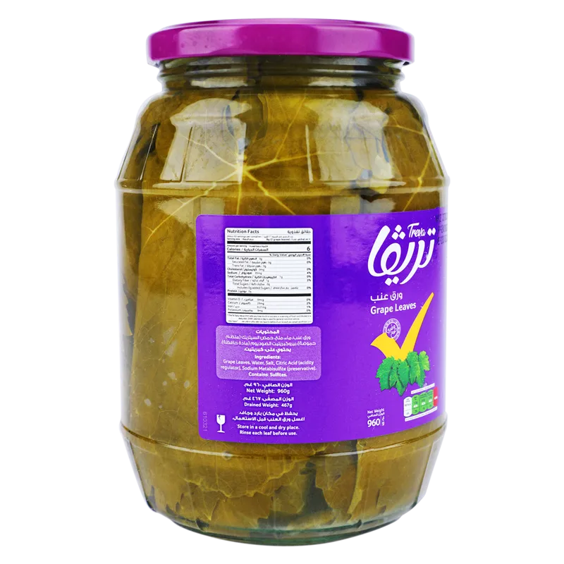 تريفا ورق عنب 960 جم هو منتج شهي وصحي، يتميز بورق العنب الطازج والملفوف بعناية ليحتفظ بنكهته الأصلية وقيمته الغذائية. يمكن استخدامه في تحضير أشهى الأطباق الشرقية والغربية، ويتميز بسهولة تحضيره وتقديمه. بالإضافة إلى ذلك، يتميز بكونه خالي من الغلوتين ولا يحتوي على أي مواد حافظة أو إضافات صناعية، مما يجعله خيارًا صحيًا وآمنًا لجميع أفراد العائلة. احصل على تريفا ورق عنب 960 جم الآن وتمتع بتجربة طعم لا تنسى.
